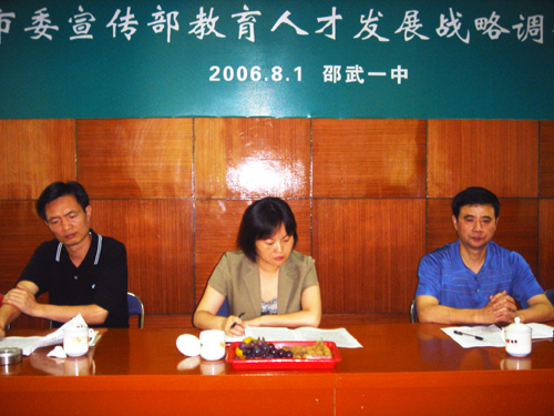 校园新闻 市委宣传部到我校开展教育人才发展战略研讨会 作者:admin 来源:本站原创 日期:2006-08-03 人气:5331 市委宣传部到我校开展教育人才发展战略研讨会 上一篇:福建大境堂旅游公司资助我校贫困大学生 下一篇:八一前夕我校领导到73886部队慰问官兵 通知公告 更多 【瑞榴 • 公告】2026年福建省邵武... 【瑞榴 • 公告】2026年福建省邵武... 【瑞榴 • 公告】2026年邵武一中第... 【瑞榴 • 公告】2026年邵武一中自... 【瑞榴 • 公告】2026年福建省邵武... 【瑞榴 • 公告】2026年福建省邵武... 最新动态 更多 【瑞榴 • 社团活动】传承非遗文脉... 【瑞榴 • 优秀校友】情系母校 反... 【瑞榴 • 安全】筑牢安全防线,... 【瑞榴 • 团建】铭记千秋功勋,... 【瑞榴 • 社团活动】暖心相伴,... 【瑞榴 • 学生活动】千年傩舞进校... 【瑞榴 • 教研】研思共进,赋能课... 【瑞榴 • 党建】“党纪铸魂守初心... 【瑞榴 • 近视防控】瑞榴润心 守... 【瑞榴 • 安全】防毒护苗,青春无...
