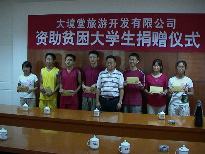 8月14日,福建大境堂南武夷旅游投资发展公司董事长周礼德先生,在陈心坦副书记、熊元龙局长的陪同下顶着骄阳酷暑来到邵一中,与我校应届贫困大学生亲切地交谈,并资助了陈钰、邓小妹等七位同学每人5000元作为大学第一学期的学费,还表示将对家庭特别困难的吴辉(清华大学)、陈钰(上海理工大学)、丁香清(天津科技大学)三位同学进行全程跟踪,资助他们完成大学学业。