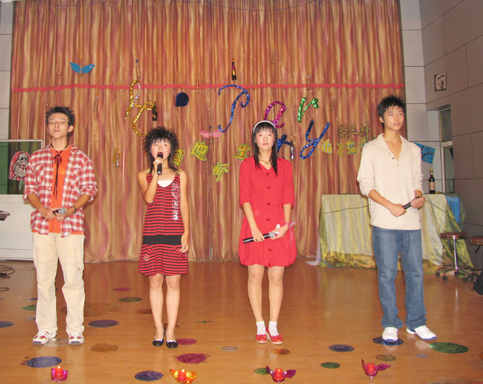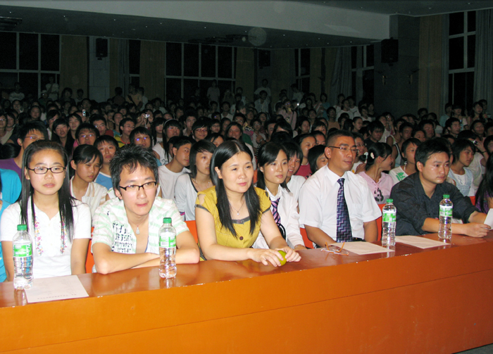 9月30日晚,丹桂飘香,邵武一中学生报告厅座无虚席,由校团委学生会举办的2006年迎新晚会晚会在动感极强的街舞表演中拉开帏幕,晚会节目精彩纷呈,由同学自编自导的舞台幽默剧《唐僧取经》以其巧妙的构思,大胆的想象不断引起同学们掌声和欢笑,校吉他协会成员自弹自唱的几曲劲歌让高一新生们见识了学长们的在高中紧张学习生活之外所练就的令人惊叹的艺术成就。整台晚会充满着欢快、热烈的气氛,节目内容健康、积极向上,展示了一中学子朝气蓬勃的精神风貌。