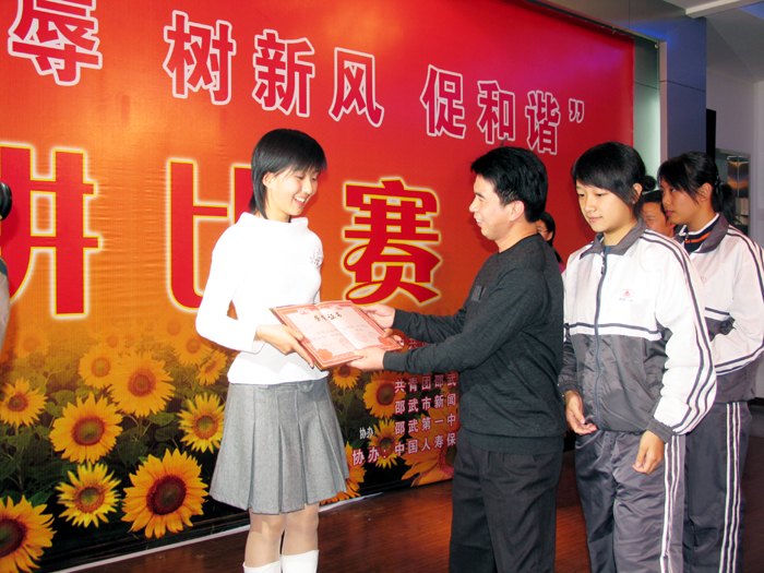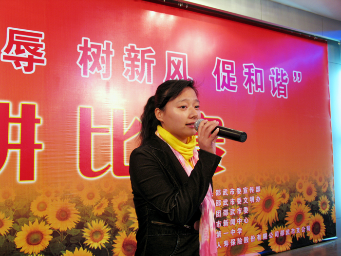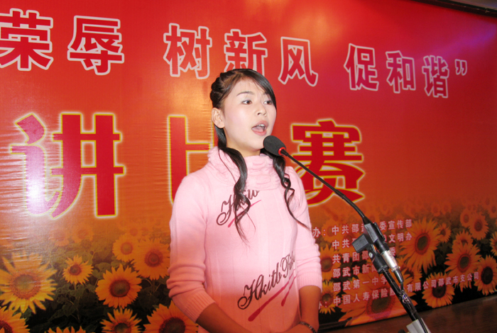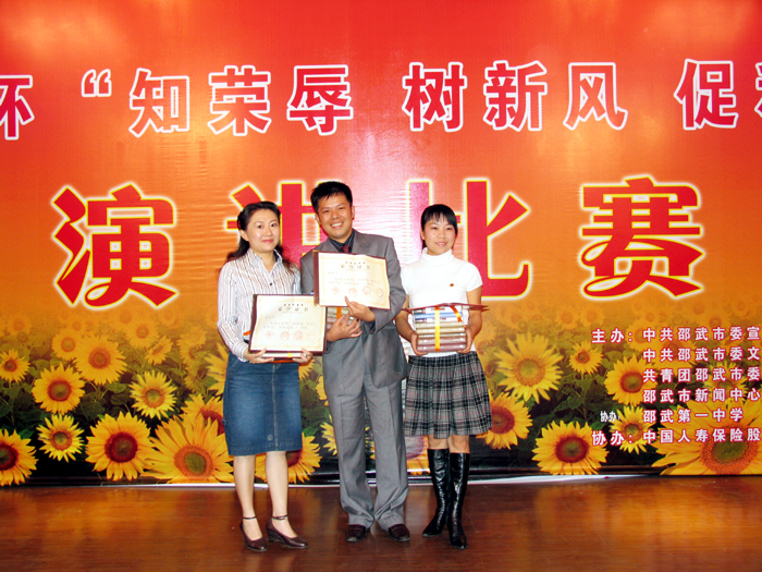 11月5日晚,由邵武市宣传部、文明办、团市委、邵武新闻中心、邵武一中主办,人寿保险、新华书店协办的 “知荣辱、树新风、促和谐”演讲比赛决赛,在邵武一中教工会议厅举行。本次演讲比赛是邵武市第六届“读书月”主题活动的重要举措,从预赛中脱颖而出的10名选手参加了决赛,市常委组织部长林贤和,市文明办主任杨华,宣传部副部长马星辉,团市委书记江克,副书记范晓蓉观看了比赛。选手们用内容真实、生动感人的事迹,阐发了自己对于“知荣辱、树新风、促和谐”这一主题的深刻认识,他们慷慨激昂的语言,流畅简洁的表达,得体自然的台风,赢得了观众阵阵掌声,精彩的演说给大家送上一堂特别的知荣明耻教育课。通过激烈角逐,比赛决出一、二、三等奖,由邵武一中团委选送的危炜同学荣获本次大赛一等奖。