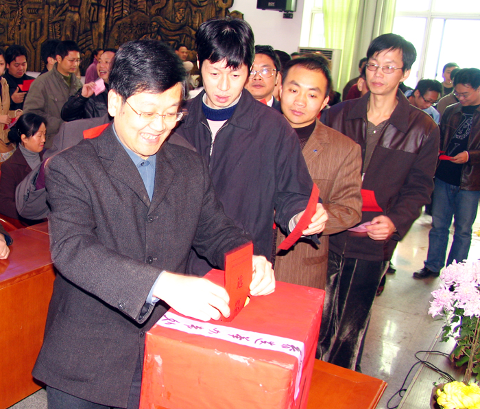 12月6日,(第十六选区)十五届市人大代表换届选举大会在邵武一中教工会议室召开,邵武一中全体选民采用无记名投票的方式对第十六选区的余义麟、吴学双、吴浩、范纯善、杨华这五位候选人进行了五选三的差额选举。本次选举,工作人员精心准备,严格遵守法定程序,充分发扬了民主。