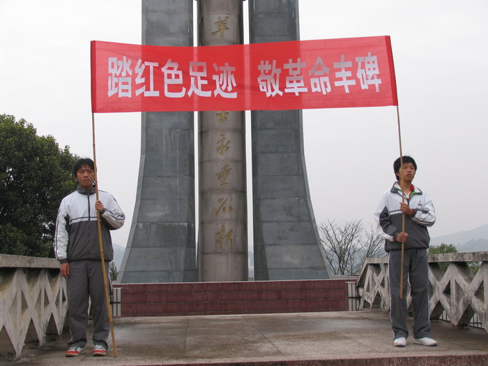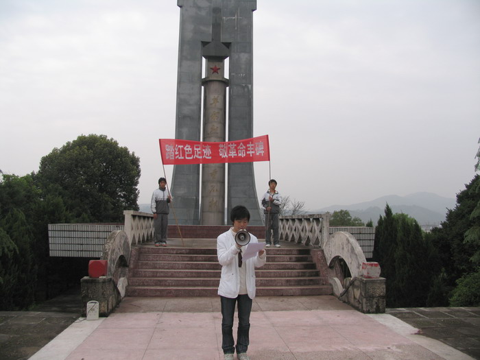 校园新闻 邵武一中团委组织团员开展"踏红色足迹,敬革命丰碑"活动 作者:admin 来源:本站原创 日期:2007-04-04 人气:4390 邵武一中团委组织团员开展"踏红色足迹,敬革命丰碑"活动 3月2日上午,邵武一中团委组织开展“踏红色足迹,敬革命丰碑”活动,全校30多名师生前往祭扫烈士墓,缅怀革命先烈。师生们步行到烈士陵园,在庄严肃穆的革命烈士纪念碑前,同学们心中的敬佩缅怀之情油然而生。敬献花圈,献诗,默哀,瞻仰烈士生平事迹--同学们诚挚而认真地向烈士的英灵表达着心中的敬仰以及学习先烈无私奉献精神,刻苦学习,报效祖国的坚定决心。 上一篇:邵武一中党总支召开“丰富邵武精神,提高自身素质”研讨会 下一篇:邵武一中高中校本课程开课啦! 通知公告 更多 【瑞榴 • 公告】2026年福建省邵武... 【瑞榴 • 公告】2026年福建省邵武... 【瑞榴 • 公告】2026年邵武一中第... 【瑞榴 • 公告】2026年邵武一中自... 【瑞榴 • 公告】2026年福建省邵武... 【瑞榴 • 公告】2026年福建省邵武... 最新动态 更多 【瑞榴 • 社团活动】传承非遗文脉... 【瑞榴 • 优秀校友】情系母校 反... 【瑞榴 • 安全】筑牢安全防线,... 【瑞榴 • 团建】铭记千秋功勋,... 【瑞榴 • 社团活动】暖心相伴,... 【瑞榴 • 学生活动】千年傩舞进校... 【瑞榴 • 教研】研思共进,赋能课... 【瑞榴 • 党建】“党纪铸魂守初心... 【瑞榴 • 近视防控】瑞榴润心 守... 【瑞榴 • 安全】防毒护苗,青春无...