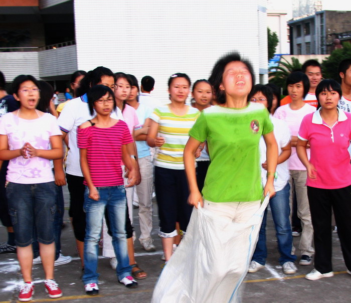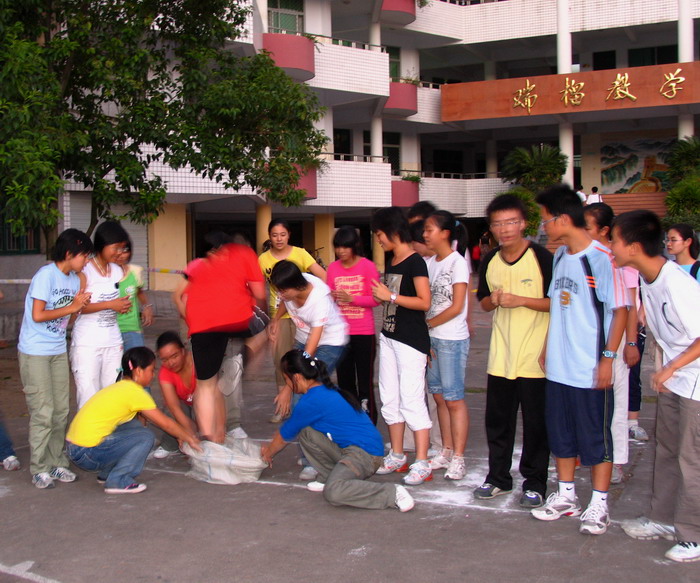 本次活动的项目有“袋鼠跳”、“收种”、“绕杆跑”这三个集体比赛项目。活动中,各队精诚合作,相互鼓励;各队员精神饱满,意气奋发。整个运动场上笑声、喝彩声此起彼伏。