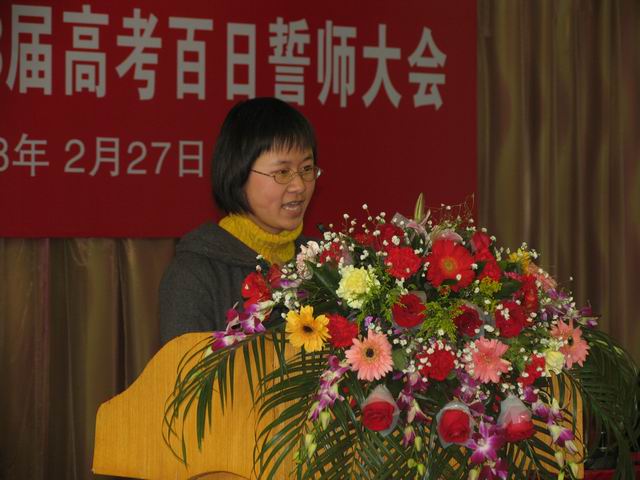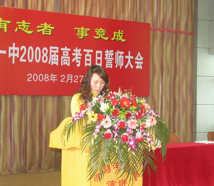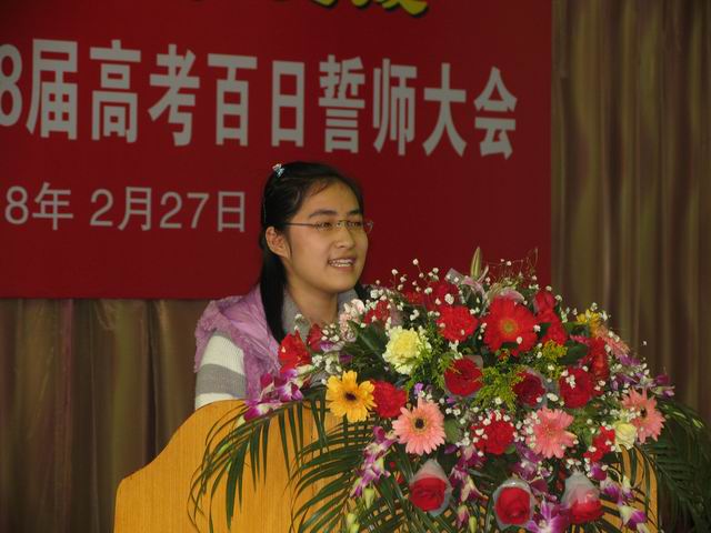 誓师大会由高三段长高启长主持,杨方副校长在致辞中勉励每一位高三学子把握机遇,勤奋努力,在冲刺阶段尤其要处理那与老师交流、与家长沟通、与同学融洽这几个方面的关系。随后14个班级的代表纷纷登台发言,誓言充满了对胜利的渴望和激情。高三教师代表阙红玉老师的发言不仅对学生提出了要求,还表达了对本届高三的信心与期望。