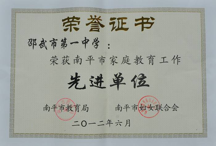 校园新闻 我校荣获南平市家庭教育先进单位光荣称号 作者:admin 来源:本站原创 日期:2012-06-18 人气:2463 上一篇:喜报:一中优秀毕业生吴超同学取得东南大学2012届免试攻读清华大 下一篇:邵武一中开展“6月5日世界环境日”系列宣传活动 通知公告 更多 【瑞榴 • 公告】2026年福建省邵武... 【瑞榴 • 公告】2026年福建省邵武... 【瑞榴 • 公告】2026年邵武一中第... 【瑞榴 • 公告】2026年邵武一中自... 【瑞榴 • 公告】2026年福建省邵武... 【瑞榴 • 公告】2026年福建省邵武... 最新动态 更多 【瑞榴 • 德育】以赛砺师 匠心育... 【瑞榴 • 安全】2026总体国家安全... 【瑞榴 • 安全】联合调研促规范 ... 【瑞榴 • 主题教育】志愿学雷锋,... 【瑞榴 • 社团活动】传承非遗文脉... 【瑞榴 • 优秀校友】情系母校 反... 【瑞榴 • 教研】校际交流促成长 ... 【瑞榴 • 思政课】缅怀先烈志 传... 【瑞榴 • 安全】筑牢安全防线,... 【瑞榴 • 团建】铭记千秋功勋,...
