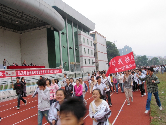 经过二天半的激烈角逐,邵武一中第47届田径运动会于10月25日上午胜利落下帷幕。本届校运会的主题是“弘扬奥运精神,共建和谐一中”,突出“团结、友谊、和谐、参与”的特点,全体师生团结友爱、文明参赛,赛场上奋力拼搏,在进行的10个大项目比赛中,共决出冠军79人次,其中来自高三7班的朱蓉蓉同学打破女子800米校运会记录,高三13班的谢腾飞同学打破三级跳校运会记录。