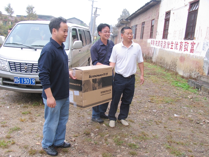 校团委代表学校为金坑乡文化中心户送电脑并到金坑小学爱心捐赠