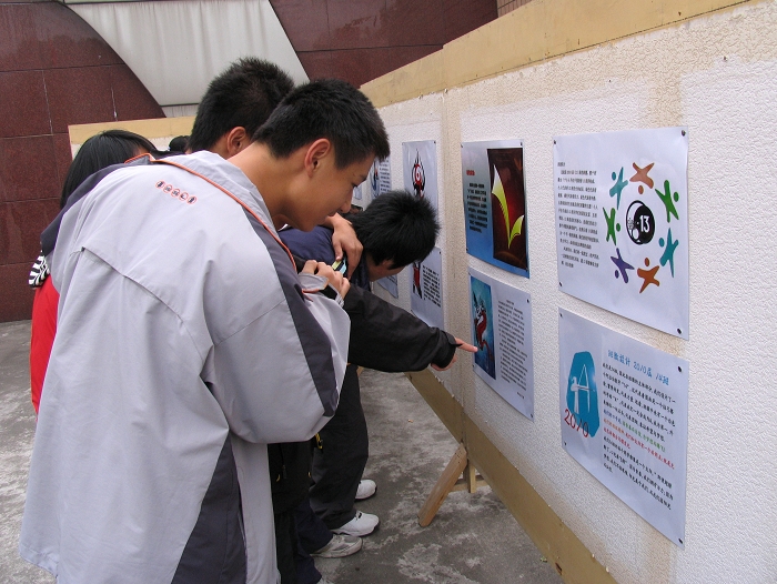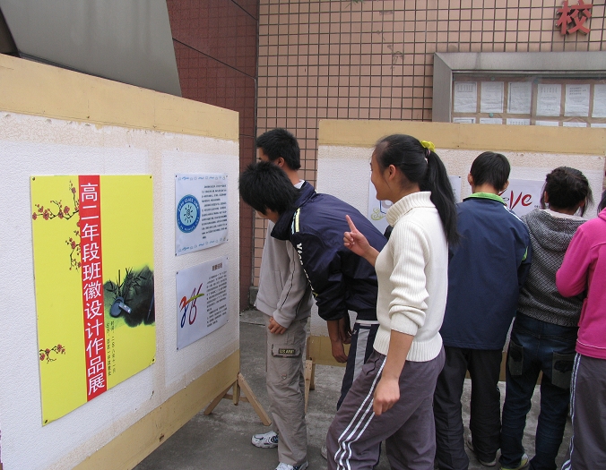 “这个班徽整个是一个“我”字,在这个人才辈出的时代“我”字又体现了一种自信—我行,我能,我可以!这也代表了我们班自信的班风班貌!”高二(2)班的班长黄睿正卖力地向围观同学介绍自己班的班徽。他们班要争取在全校班徽设计大赛中拨得头筹。