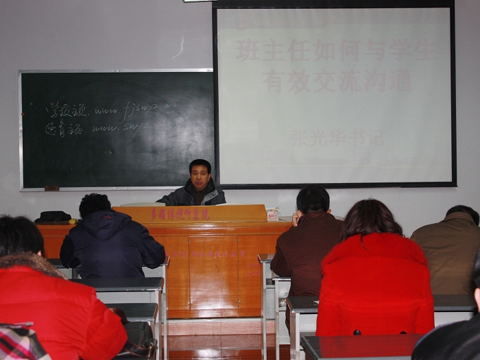 近日,邵武一中政教处、团委在校多媒体教室召开德育工作会议,全校40多名班主任、年段长参加了会议。校党委张光华书记作了《班主任如何与学生有效交流沟通》的专题讲座,他从“用智慧去和学生沟通”,“怎样与学生沟通”两个方面,结合大量生动的事例系统阐述了班主任工作的方法和艺术。会上,校团委吴昊书记还详细介绍了学校德育资源网络平台《邵武一中青春联盟》的构成与使用方法,学校将以此平台为契机,大力开展“班级网络文化”的建设。最后校政教处李秀林主任对一个学期以来的德育工作作了总结。