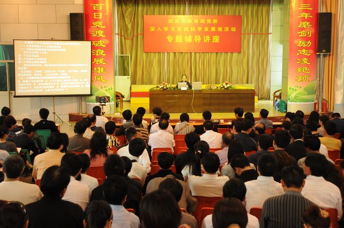16日,一中党委理论学习中心组在校长会议室举行学习实践科学发展观集体学习活动。会上,校党委张光华书记带领大家学习了《科学发展观重要论述摘编》的有关内容,他要求大家在学习中要注意学习与工作有效结合,局部与整体学习相结合。校党委副书记、校长范纯善在发言中指出,学校学习实践科学发展观活动,要紧密联系学校改革和发展的实际,紧紧围绕学校的可持续发展,围绕教育教学质量的不断提高来开展。通过本次学习实践活动,着力重点解决好学校面临的发展不平衡问题。校党委组织委员、副校长杨方在会上布置了学习实践活动的有关工作事项。会后学习组成员一同来到校学生报告厅集中听取了市教育局党委组织的“深入学习实践科学发展观”专题辅导讲座。