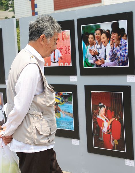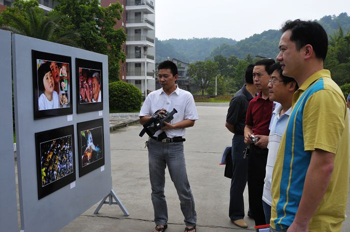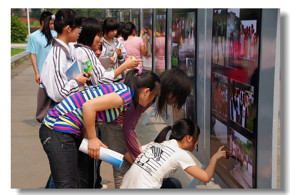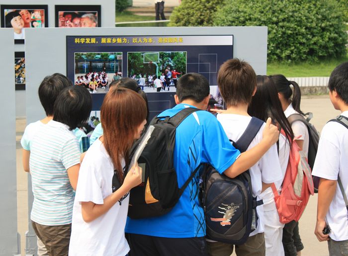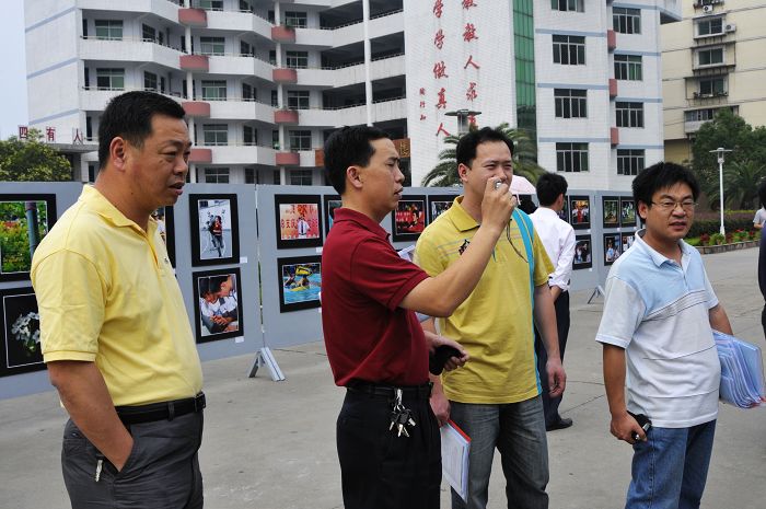 “你看,你看,我们班多帅啊!”“我们的班主任真神气!”“没想到我们的校园照出来这么美!”下课后,同学们把校园里的影展挤了个水泄不通。