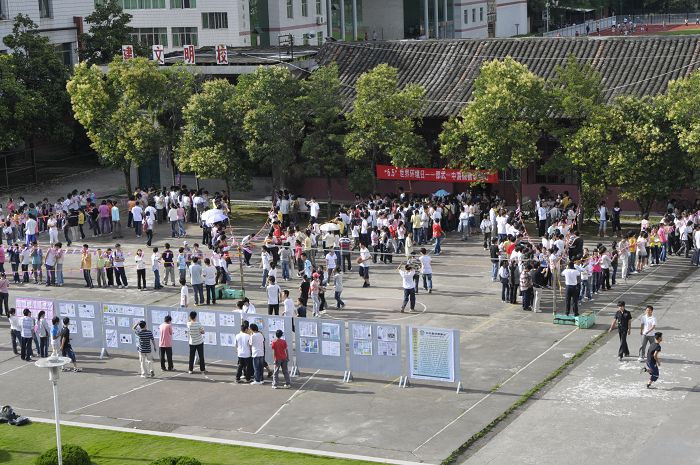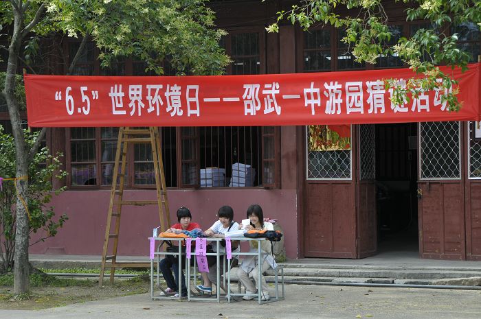 “两个胖子打一中国城市——我知道,我知道是合肥”!“文太师打翻醋罐子——谜底是酸雨!”邵武一中同学们兴奋地聚集在一中六五世界环境日猜谜游园活动现场,快乐地猜谜、观看地理小报的展板。不知不觉中,同学们学习到了许多的环保和地理知识。