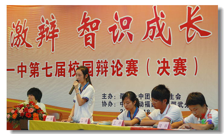 校园新闻 一中第七届中学生辩论赛剪影 作者:admin 来源:本站原创 日期:2009-09-22 人气:3105 上一篇:一中第七届中学生辩论赛剪影2 下一篇:一中第七届中学生辩论赛成功举办 通知公告 更多 【瑞榴 • 公告】2026年福建省邵武... 【瑞榴 • 公告】2026年福建省邵武... 【瑞榴 • 公告】2026年邵武一中第... 【瑞榴 • 公告】2026年邵武一中自... 【瑞榴 • 公告】2026年福建省邵武... 【瑞榴 • 公告】2026年福建省邵武... 最新动态 更多 【瑞榴 • 德育】以赛砺师 匠心育... 【瑞榴 • 安全】2026总体国家安全... 【瑞榴 • 安全】联合调研促规范 ... 【瑞榴 • 主题教育】志愿学雷锋,... 【瑞榴 • 社团活动】传承非遗文脉... 【瑞榴 • 优秀校友】情系母校 反... 【瑞榴 • 教研】校际交流促成长 ... 【瑞榴 • 思政课】缅怀先烈志 传... 【瑞榴 • 安全】筑牢安全防线,... 【瑞榴 • 团建】铭记千秋功勋,...