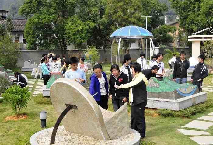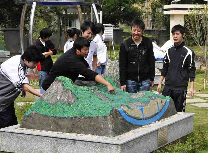 图为邵武一中为优化办学硬件,投资100多万元建设高标准两室两园即历史、地理室和生态地理、生物园。其中生态地理、生物园占地1800平方米,2009年8月25日竣工验收并交付使用,它是目前为止全省中学中最大的生态地理、生物园。园内设有高标准的星空亭、立体地球仪、地球的内部构造模型、 水生旱生动植物群落等。