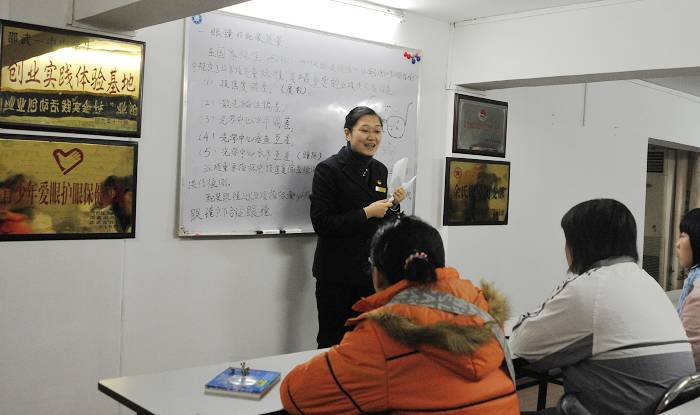 “你瞧这是我测的瞳距,帮我检验一上!”外联部的丁跃楠同学小心地操作着一台瞳距仪和组合验光仪,店上经理在一旁耐心地为她介绍设备的使用,并不时地给同学们介绍爱眼护眼常识,“我天天戴眼镜,没想到这里还有这么多的学问!”“好戏还在后头呢!团委老师不但要请店上经理为大家作一场关于眼镜品牌营销的专题讲座,还要带大家走企业,下农场,走出校园,触摸社会经济发展脉搏呢!大家到时可要拿出自己的成果哟!”丁跃楠是一中学生会外联部的部长,从年初她就和学生会的同学们一起在筹划这个“中学生创业实践体验”活动,从实践基地的选择到活动流程的筹划,花费了学生会全体同学大量的心血,在校团委老师的肯定与大力帮助下,这个活动得以瓜熟蒂落。“这个活动为什么选在余氏眼镜店启动,是因为他们是省五四红旗团支部,而且现在中学生戴眼镜的越来越多,大家从这里入手一能体现共青团队伍的外接,二从身边做起会更有兴趣!”“活动一定要做到最好,因为她是我们自己的!!”丁跃楠拉着她的副部长信心十足地告诉大家。