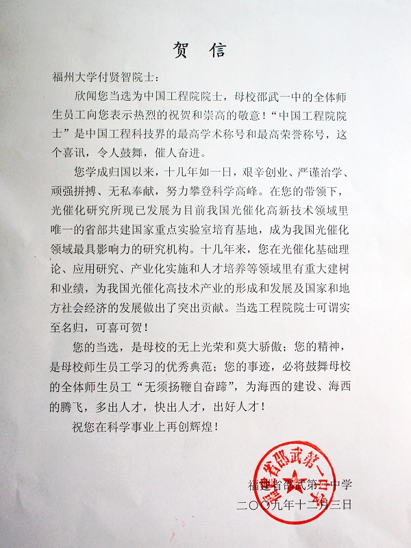 校园新闻 贺信 作者:admin 来源:本站原创 日期:2009-12-03 人气:3298 上一篇:喜讯:邵武一中74届校友付贤智教授当选为中国工程院院士 下一篇:邵武一中第四十八届运动会颁奖仪式 通知公告 更多 【瑞榴 • 公告】2026年福建省邵武... 【瑞榴 • 公告】2026年福建省邵武... 【瑞榴 • 公告】2026年邵武一中第... 【瑞榴 • 公告】2026年邵武一中自... 【瑞榴 • 公告】2026年福建省邵武... 【瑞榴 • 公告】2026年福建省邵武... 最新动态 更多 【瑞榴 • 德育】以赛砺师 匠心育... 【瑞榴 • 安全】2026总体国家安全... 【瑞榴 • 安全】联合调研促规范 ... 【瑞榴 • 主题教育】志愿学雷锋,... 【瑞榴 • 社团活动】传承非遗文脉... 【瑞榴 • 优秀校友】情系母校 反... 【瑞榴 • 教研】校际交流促成长 ... 【瑞榴 • 思政课】缅怀先烈志 传... 【瑞榴 • 安全】筑牢安全防线,... 【瑞榴 • 团建】铭记千秋功勋,...