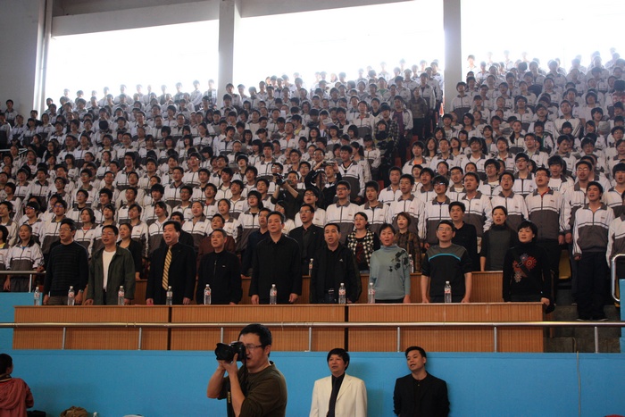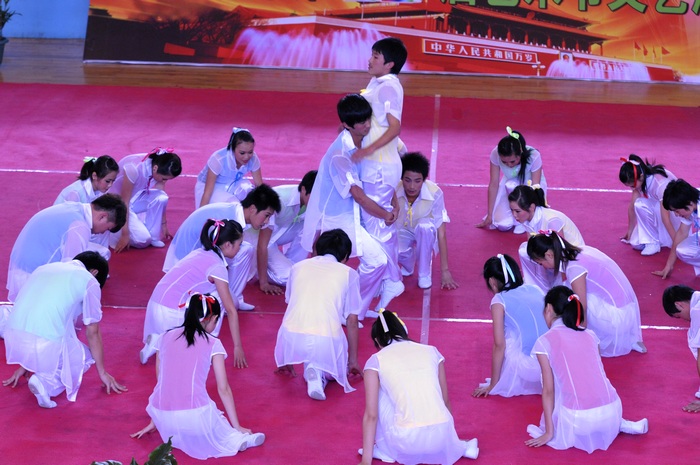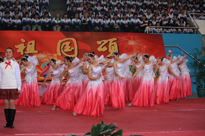 最后文艺演出在全校师生合唱的雄壮的《歌唱祖国》声中落下帷幕。