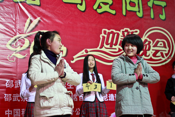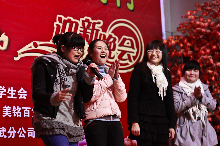 会场里人山人海,对晚会的期待令同学们忘记了寒冷。