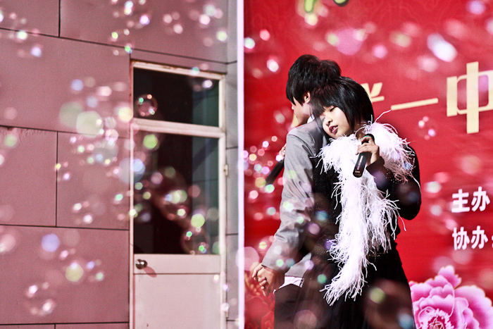 (图为由高一(13)班的两位同学表演的双人舞:Chocolate love)