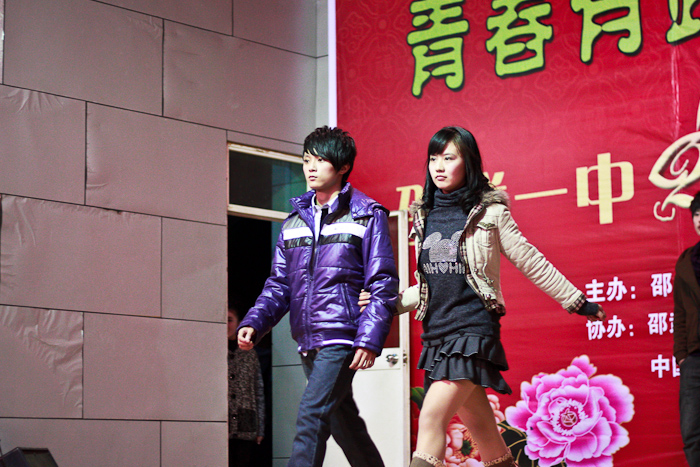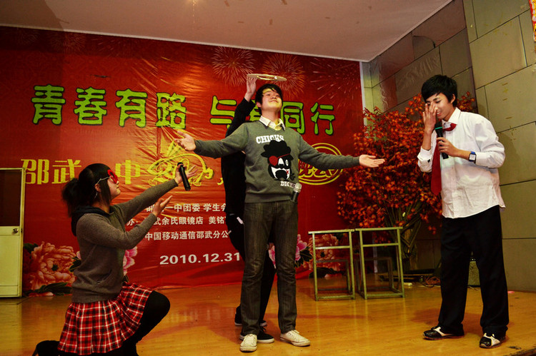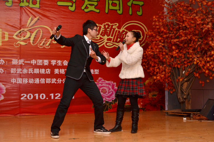 尽管当晚天气有些寒冷,却丝毫不影响同学们高涨的热情。演出在动感十足的乐队演唱“够爱”中拉开了帷幕,青春的气息和张扬的活力一下子就点燃了全场的气氛,喝彩声不断。现代双人舞《Chocolate Love》在徐徐的音乐声中闪亮登场,演员踩着优雅的舞步,和着柔美的曲调,仿佛将我们带进了如诗如画的境地。小品《大话英语》,用诙谐的表演,将英语学习中的困惑与无奈淋漓尽致的表达了出来。琵琶独奏可谓“一曲琵琶歌,道尽渭水情;嘈嘈切切错杂弹,大珠小珠落玉盘”。高一12班肖梓毅同学的单口相声《幸福童年》更把学生生活中的笑料串编起来,让现场变成了欢乐的海洋。最后,晚会在学生会各部部长的合唱歌曲《爱的翅膀》中落下帷幕。