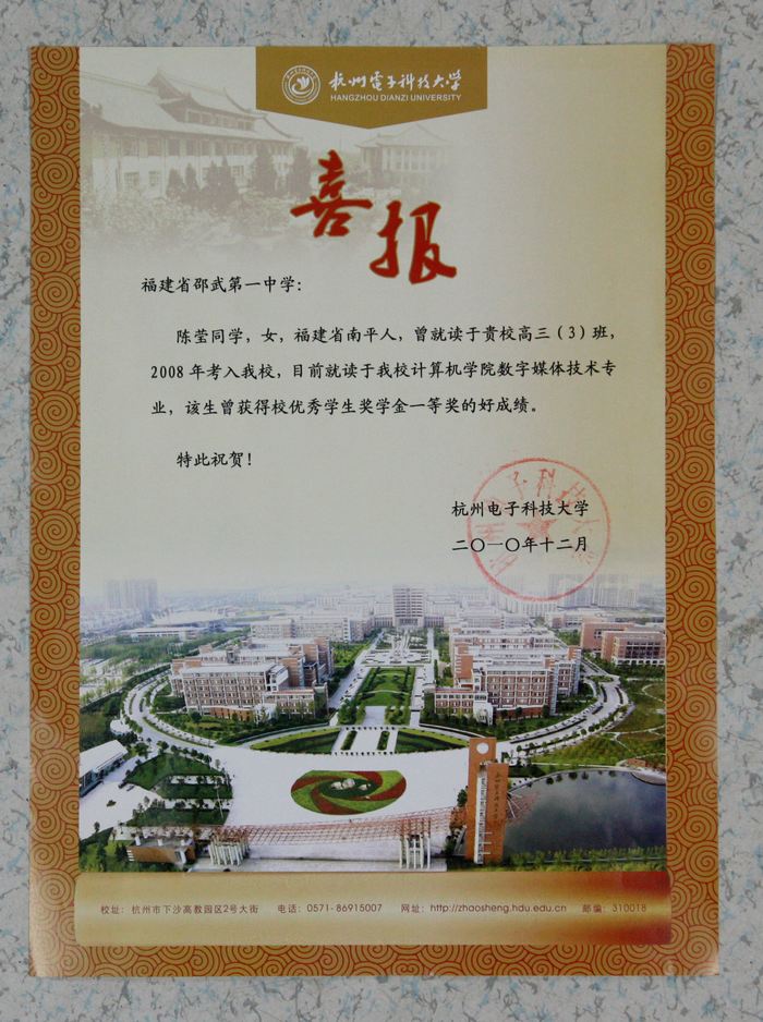 校园新闻 喜讯:我校毕业生荣获杭州电子科技大学奖学金 作者:admin 来源:本站原创 日期:2011-01-13 人气:3771 上一篇:一中团委学生会开展“希望暖人心,迎春祝家福”爱心写春联活动 下一篇:市教工委到一中开展2010年党建目标责任制考评 通知公告 更多 【瑞榴 • 公告】2026年福建省邵武... 【瑞榴 • 公告】2026年福建省邵武... 【瑞榴 • 公告】2026年邵武一中第... 【瑞榴 • 公告】2026年邵武一中自... 【瑞榴 • 公告】2026年福建省邵武... 【瑞榴 • 公告】2026年福建省邵武... 最新动态 更多 【瑞榴 • 德育】以赛砺师 匠心育... 【瑞榴 • 安全】2026总体国家安全... 【瑞榴 • 安全】联合调研促规范 ... 【瑞榴 • 主题教育】志愿学雷锋,... 【瑞榴 • 社团活动】传承非遗文脉... 【瑞榴 • 优秀校友】情系母校 反... 【瑞榴 • 教研】校际交流促成长 ... 【瑞榴 • 思政课】缅怀先烈志 传... 【瑞榴 • 安全】筑牢安全防线,... 【瑞榴 • 团建】铭记千秋功勋,...
