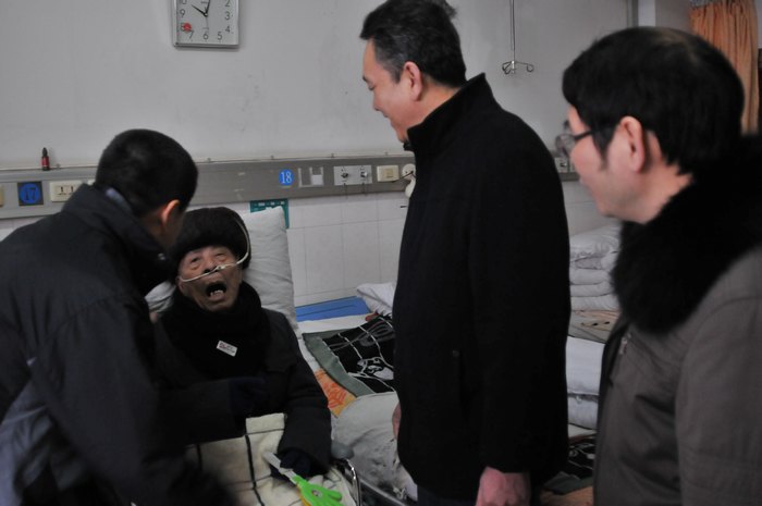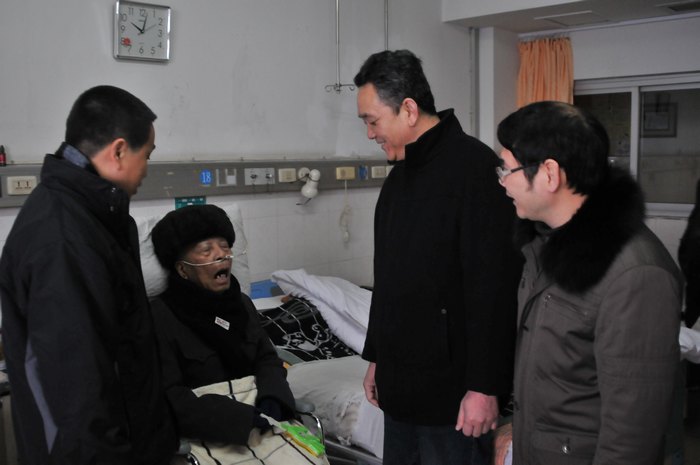 26日上午,一中校长范纯善、党委书记张光华冒雨带着鲜花和慰问金先来到市立医院探望了退休副校长付为旺,接着到离休老教师李直家中进行了看望慰问,把学校的关怀和温暖送到老教师的心坎上。校领导详细询问了他们的生活情况和身体状况,感谢他们为学校做出的贡献,并希望他们一如既往地关心、支持和理解学校工作,为学校的发展出谋献策。