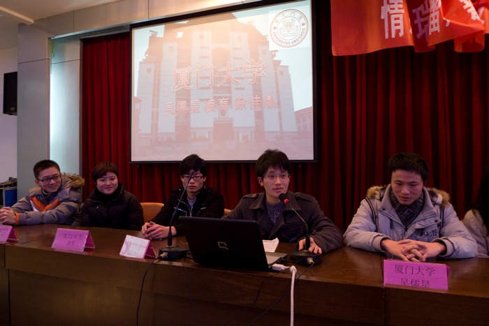 25日下午,来自北京邮电大学、北京师范大学、南京大学、厦门大学、山东大学的一中09届8名优秀毕业生相约来到母校一中,开展“情系瑞榴,薪火相传” 2011年优秀大学生面对面活动。报告会上,大学生们兴奋地谈高中生活,谈高考,谈大学,他们诙谐幽默的讲演不时引起在场同学们的阵阵会心的笑声和掌声。