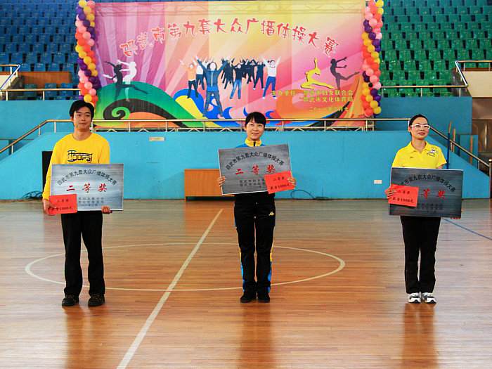 邵武一中代表队荣获市第九套大众广播体操比赛二等奖 为庆祝“三八”国际劳动妇女节的到来,由邵武市妇联、文体局联合主办的“邵武市第九套大众广播体操比赛”在市篮球馆隆重举行。来自邵武各单位18支代表队依次登台亮相。经过一天的激烈角逐,各参赛队表现出良好的竞技水平,展现了“健康、和谐、向上”的精神风貌。最后,市公安局代表队荣获一等奖,邵武一中代表队荣获比赛二等奖。