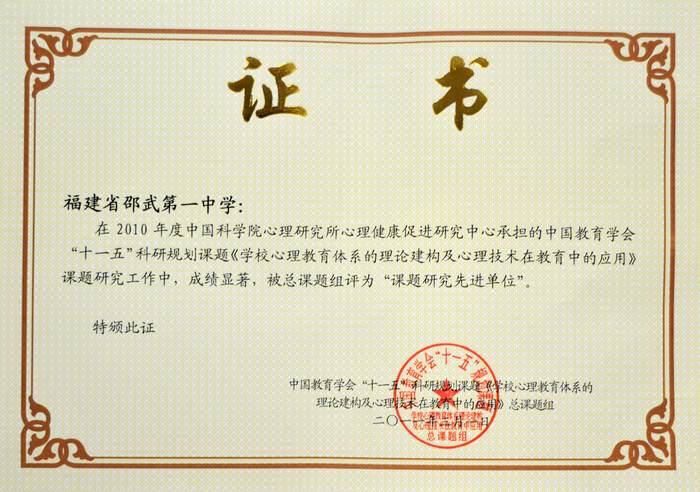 校园新闻 喜讯:我校荣获中国教育学会“十一五”科研规划课题《学校心理教育体系的理论建构及心理技术在教育中的应用》课题研究先进单位 作者:admin 来源:本站原创 日期:2011-04-20 人气:2911 上一篇:张光华书记参加中国教育学会化学教学专业委员会第十四次学术年会 下一篇:校团委、学生会组织校园辩论赛复赛 通知公告 更多 【瑞榴 • 公告】2026年福建省邵武... 【瑞榴 • 公告】2026年福建省邵武... 【瑞榴 • 公告】2026年邵武一中第... 【瑞榴 • 公告】2026年邵武一中自... 【瑞榴 • 公告】2026年福建省邵武... 【瑞榴 • 公告】2026年福建省邵武... 最新动态 更多 【瑞榴 • 德育】以赛砺师 匠心育... 【瑞榴 • 安全】2026总体国家安全... 【瑞榴 • 安全】联合调研促规范 ... 【瑞榴 • 主题教育】志愿学雷锋,... 【瑞榴 • 社团活动】传承非遗文脉... 【瑞榴 • 优秀校友】情系母校 反... 【瑞榴 • 教研】校际交流促成长 ... 【瑞榴 • 思政课】缅怀先烈志 传... 【瑞榴 • 安全】筑牢安全防线,... 【瑞榴 • 团建】铭记千秋功勋,...