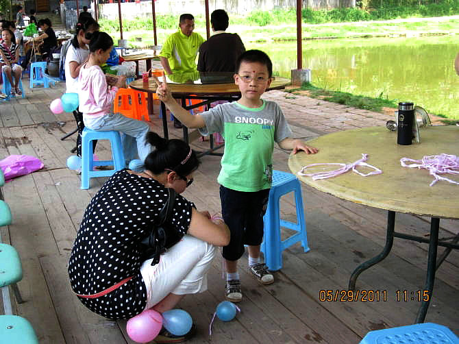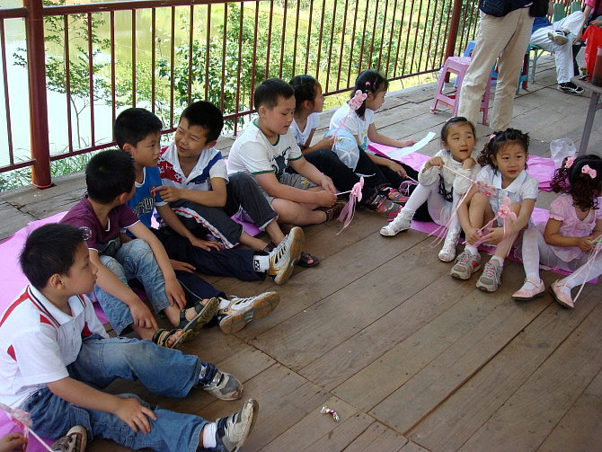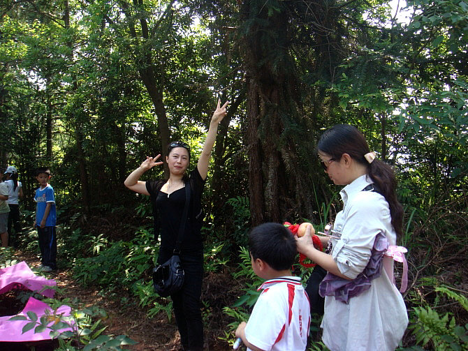 智慧妈妈们筹划了好多有趣的节目:唱校歌、登山、寻宝、猜谜语、脑筋急转弯、亲子活动踩气球、才艺表演。孩子们个个身手不凡,争先恐后!喊叫声、欢呼声、笑声歌声将周围其他的孩子都吸引过来了,羡慕得不得了,哈哈,最后他们也加入了我们的团队。