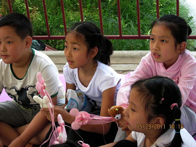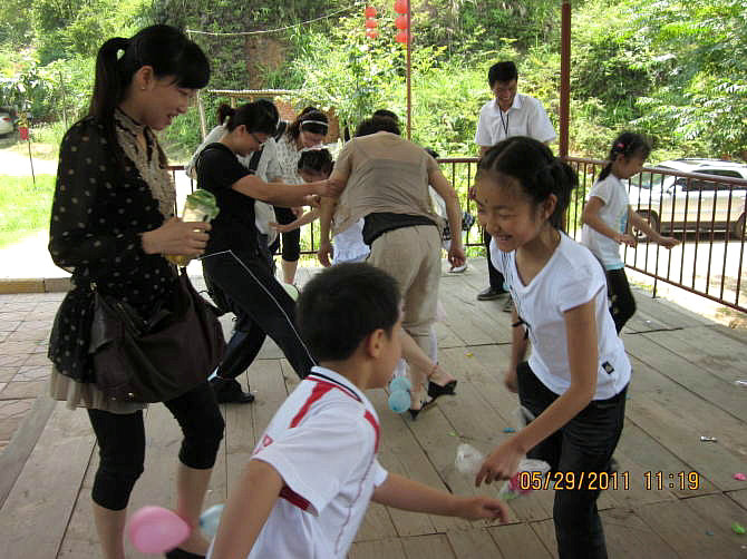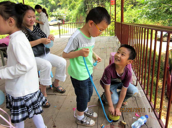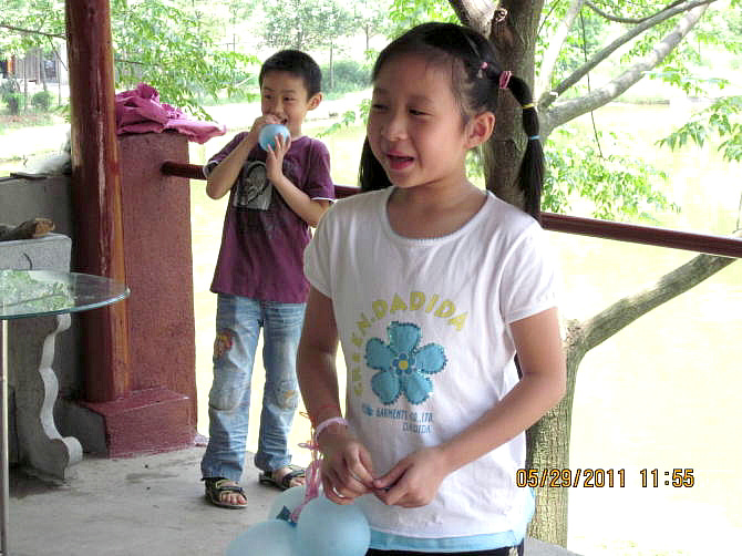 踩气球让大家又叫又笑,当然最后还有哭的,哈哈!