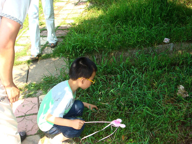 寻宝活动开始了!哈,杨俊豪找到了一只千纸鹤啦!