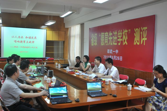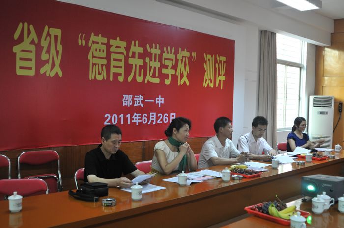 近日,南平市教育局德育科杨建军主任为组长的省级德育工作先进校测评组一行3人莅临一中进行省级德育工作先进校的测评。测评小组在听取范纯善校长所作的德育工作汇报后,查阅了德育档案材料,对学校的德育工作进行一次全面细致的检查和测评。通过检查评估,测评小组成员认为邵武一中德育工作不仅扎实有效,而且颇具特色。