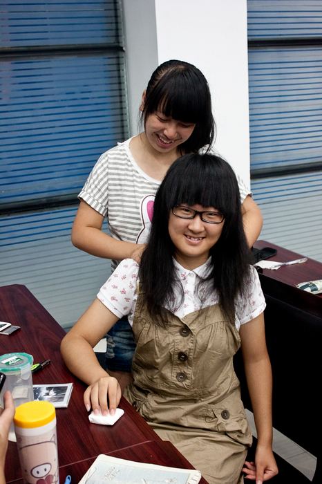 午后,我们十四人同在校的五十大学生以及台湾的五十位同学一起去听郑美凤教授的针灸课。她是一位有着丰富知识以及深沉智慧的老教授。其风趣的语言总是能够抓住我们全部的注意力。在她的课堂上常常爆发出满堂喝彩以及欢乐的笑声。