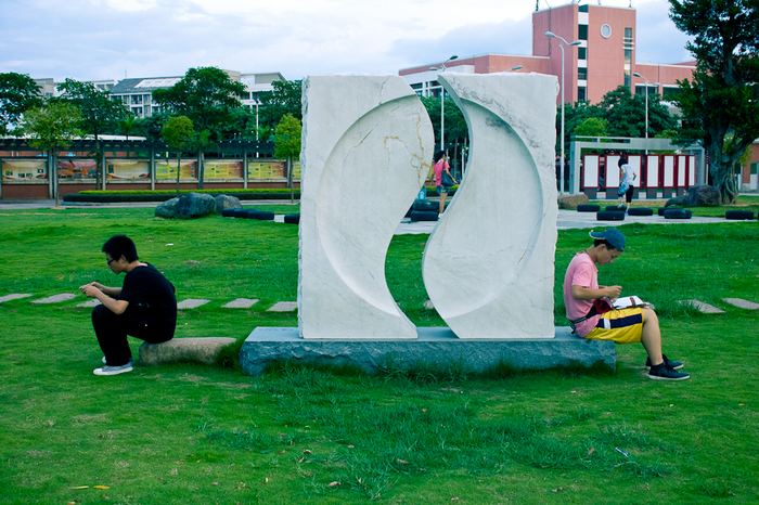 在食堂饱食一顿之后,我们被同乡的学长带领去参观大学景观。和区区五万平方米的高中相比,一千多亩的大学校区着实让我们惊讶不已——仅仅是一栋图书馆便能够占据你眼中所有的视野,而图书馆的背后是一池“杨柳清风”的湖水。如果你能够鸟瞰校区,便会发现这座图书馆是一张长弓,而那片湖水则形如一个沉睡的婴儿。