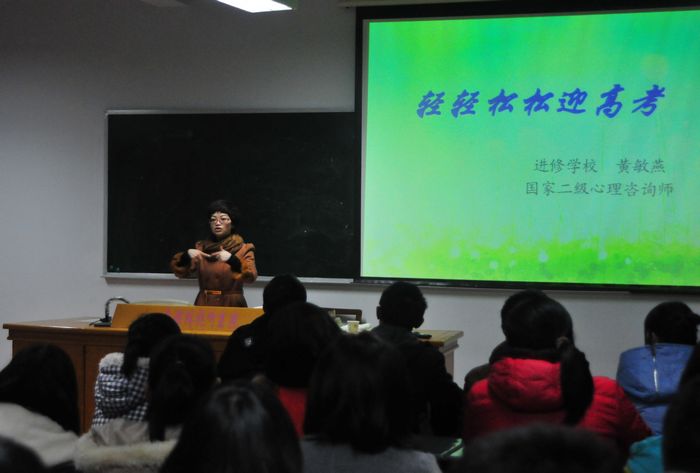 市进修学校国家二级心理咨询师黄敏燕老师为一中高三学子做考前心理减压