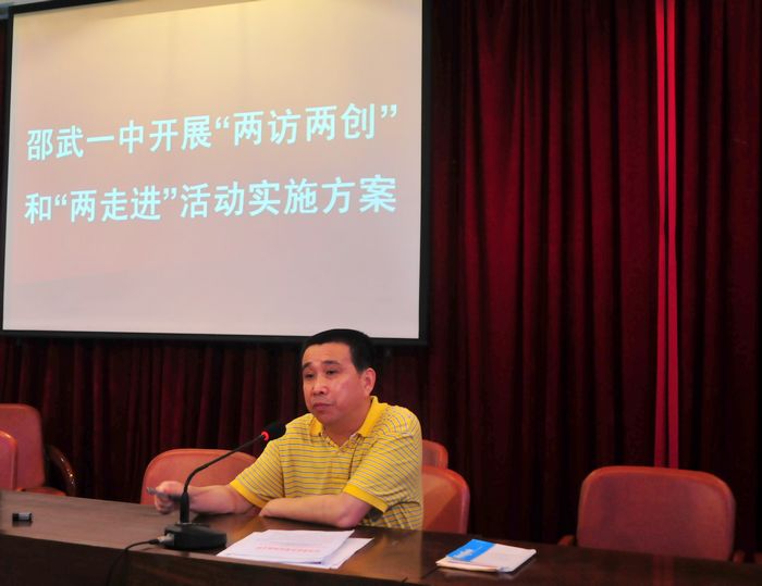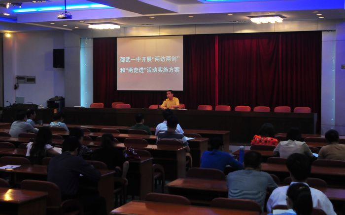 一中党委举办“两访两创”及“两走进”动员大会暨观看党员电教片活动 为加强学校党建工作,深化创先争优活动,9日邵武一中党委以“教师教书育人、学生成长成才”为主题召开“两访两创”及“两走进”动员大会。会上校党委决定通过学校领导、老师和家长三方的共同努力,通过以下活动达到家校联系更加密切,教师队伍更加团结,校园氛围更加和谐,创先争优不断深化的目的。一是加强学校领导与教师的访谈交流,密切领导与教师的关系。二是开展师生课堂以外的谈心活动,密切教师与学生的关系。三是密切教师与家长的关系。虚心听取学生家长们对课堂教学的评价和意见,不断增进互信,促进交流,增强实效。 会上全校党员教师还观看了《法官妈妈—詹红荔》以及《美丽的心灵,献给老师的歌—2011年教师节专题晚会》中为乡村教育事业奉献了年轻生命的曹瑾老师,她们的事迹深深感染了在场的每个人。
