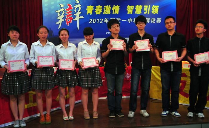 青春激情,智慧引领 ——邵武一中团委举办2013年校园辩论赛绽放思辩的魅力 一场知识与智慧的较量,一场青春激情的碰撞,18日晚,邵武一中第十届校园辩论赛决赛在邵武一中教工会议室火热举行。历时一个多月的以“青春激情,智慧引领”为主题的第十届校园辩论赛圆满落幕。校团委全体教师与同学们一同观看了决赛。正方代表队是清一色的女生,反方代表队正好相反全是男生,正反两方围绕“成长关键是自身能力还是机遇”为辩题展开激烈的辩论。反方辩手旁征博引、引经据典,正方辩手随机应变、气势逼人,正反双方针锋相对、步步紧逼,双方就“成长”、“能力”、“机遇”等关键词做了深入地剖析,双方辩手良好的风范、出色的口才、敏捷的思维不时赢来全场的阵阵掌声。决赛最后巾帼不让须眉,女生代表队荣获冠军,来自高一五班的缪仕翾获得“2013年校园辩论赛最佳辩手”称号。本次辩论赛将当代中学生的青春活力、朝气蓬勃表现得淋漓尽致。