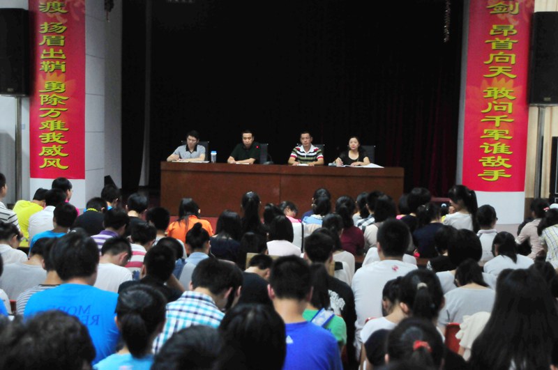 近日,邵武一中高三年段紧锣密鼓召开三会(教师会、学生会、家长会)以脚踏实地的态度迎接高考。饶干东副校长在会上客观、全面地分析了一中在2012年高考所取得的成绩,在此基础上,他还针对性地提出了高三年段教育管理和教学上应着力抓好的几个方面的重点工作。张光华书记参加了大会并做了重要发言,他提倡在新形势下全体高三教师老师都要加强有效性课堂教学的研究,加强团队意识,提高最后阶段的学习成效。他鼓励高三年级全体师生树立高度的自信,更加投入、再创辉煌。