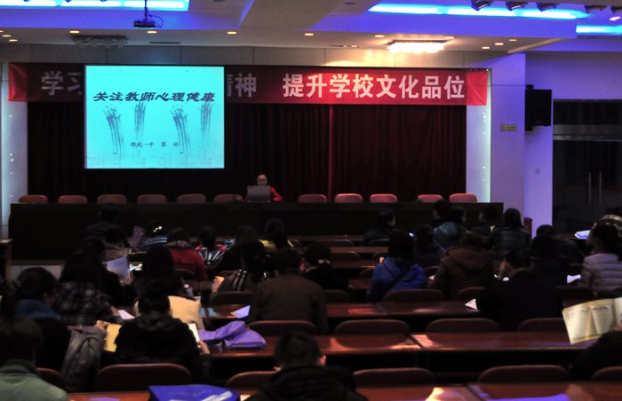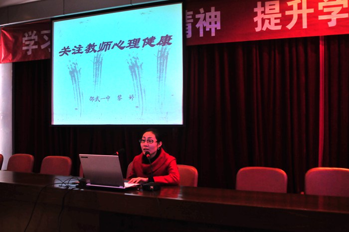 近日,邵武一中心理咨询室教师为本校教师开展了题为《关注教师心理健康》的专题讲座。心理咨询老师通过大量生动鲜活的案例,从心理学角度分析了教师的生理、心理、交际和工作等诸多方面因素造成的普遍压力,指导老师们如何通过自我的心理调节,有效控制情绪的波动来保持良好心态。这次讲座既让老师们认清了自己的心理状况,也认识到了调节情绪、保持良好心态在教学活动中的重要性。