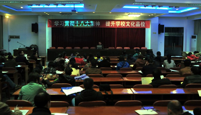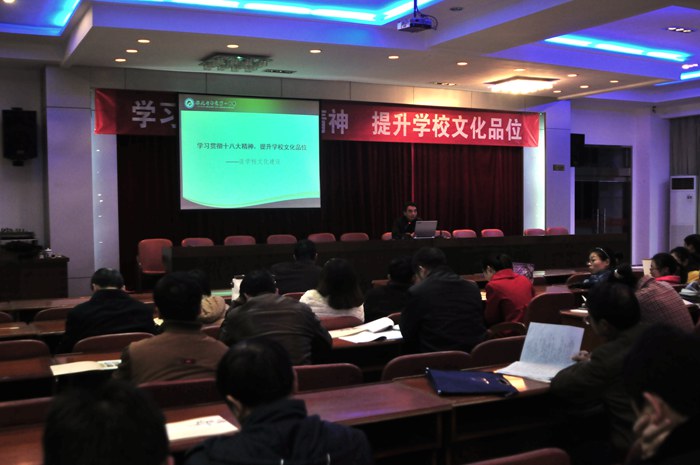 为进一步推动学校教育内涵发展,促进学校文化建设的有效实施,4日晚,一中杨方副校长为全校教师作了题为《学习贯彻十八大精神,提升学校文化品位》的专题讲座。