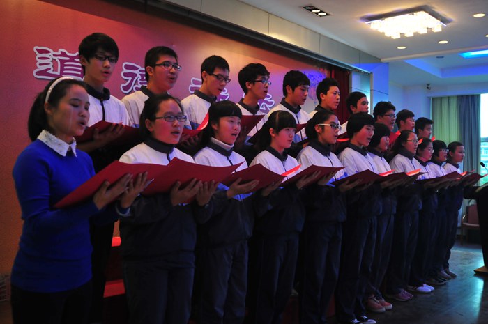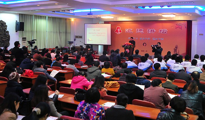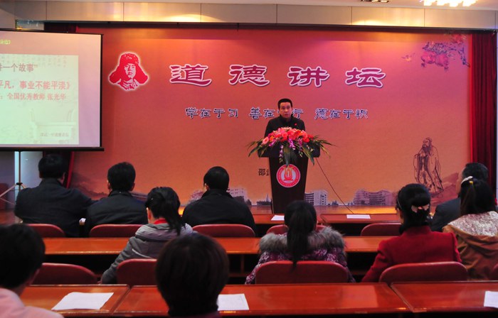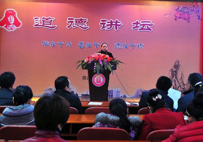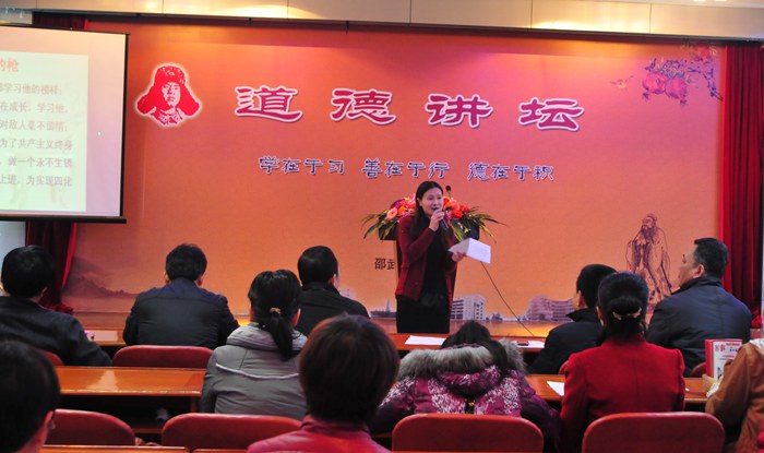 “道德讲堂”宣传思想道德,利用“身边人讲身边事、身边人讲自己事、身边事教身边人”。12月18日,邵武一中全体教职工齐聚一堂,在学校多功能厅开展“道德讲堂”活动。