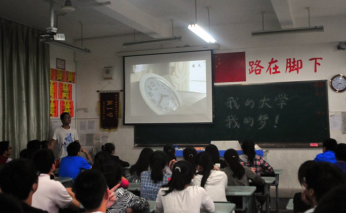 青春伴着梦想起飞。每个人都有自己的梦想,距离高考不到30天,高三学子的梦想会是什么?5月9日,邵武一中高三(五)班 “我的大学我的梦”主题班会上,全班在认真观看了由2012届学长在各大高校为大家精心制作的视频,视频深深体现了莘莘学子之间的互相关心和帮助指引的友好情谊,同时展现了星星之火代代相传的美好感情。活动中,同学们激情勃发共同畅想未来,以朗诵《梦》、歌曲《精忠报国》、演讲《我的大学蓝图》等各种形式来展现自己对大学生活和未来的憧憬、追求。主题班会后同学们纷纷表示,要珍惜每一天,努力学习,为实现自己的梦想打下坚实的基石。
