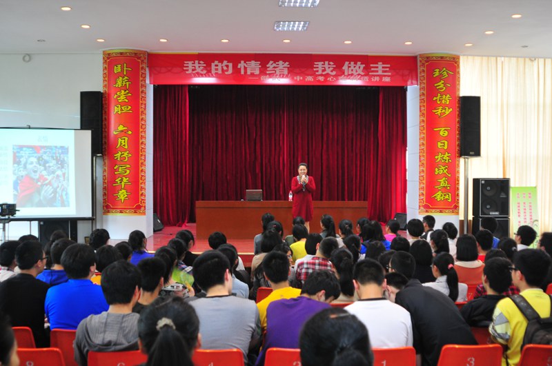 校园新闻 “我的情绪 我做主”——邵武一中高考心理调适讲座 作者:admin 来源:本站原创 日期:2013-05-10 人气:4261 2013届高考在即,为了缓解高三考生的紧张情绪,教会考生认识自己的情绪,学会运用积极的情绪迎接高考,5月10日,我校特地邀请教育心理学博士,高级讲师,福建心理危机救援中心特聘专家,福建青少年心理健康教育与咨询中心副主任——刘美玉博士前来我校给高三学生做现场讲座。刘老师的讲座轻松愉悦、幽默风趣、深入浅出,博得同学们一阵阵掌声。讲座上刘老师还教给同学们一些情绪调控方式方法,并现场引导大家体验与运用,要求同学们回去再加以练习和运用,希望能助力同学们打赢高考这场战役。 上一篇:一中文明引导学雷锋党员志愿者在行动 下一篇:邵武一中举办高三趣味体育活动缓解高考压力 通知公告 更多 【瑞榴 • 公告】2026年福建省邵武... 【瑞榴 • 公告】2026年福建省邵武... 【瑞榴 • 公告】2026年邵武一中第... 【瑞榴 • 公告】2026年邵武一中自... 【瑞榴 • 公告】2026年福建省邵武... 【瑞榴 • 公告】2026年福建省邵武... 最新动态 更多 【瑞榴 • 德育】以赛砺师 匠心育... 【瑞榴 • 安全】2026总体国家安全... 【瑞榴 • 安全】联合调研促规范 ... 【瑞榴 • 主题教育】志愿学雷锋,... 【瑞榴 • 社团活动】传承非遗文脉... 【瑞榴 • 优秀校友】情系母校 反... 【瑞榴 • 教研】校际交流促成长 ... 【瑞榴 • 思政课】缅怀先烈志 传... 【瑞榴 • 安全】筑牢安全防线,... 【瑞榴 • 团建】铭记千秋功勋,...