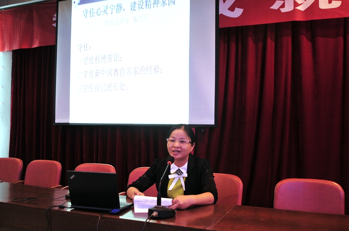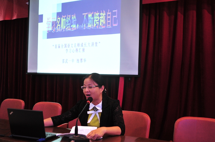 讲座中,两位教师以语文学科专业知识与素养为引领,纵深延展,将语文大家魏书生等人的教育教学智慧渗透到整个教育理念中,促进了优质资源共享。主讲人声情并茂的讲说获得了与会教师的认同。最后张光华书记做了热情洋溢的讲话,他鼓励所有一中教师要把读书当作教师成长必需,不断提升自身的文化素质。