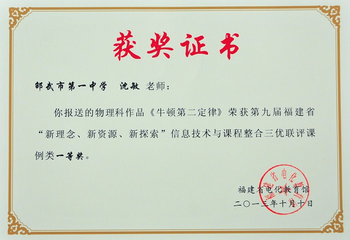 近日,从省教育厅电教馆传来喜讯,一中组织参加省教育厅电教馆主办的第九届福建省“新理念、新资源、新探索”信息技术与课程整合三优联评比赛中,再创佳绩,共获得课例类一二三等奖各一名,课件类三等奖一名。