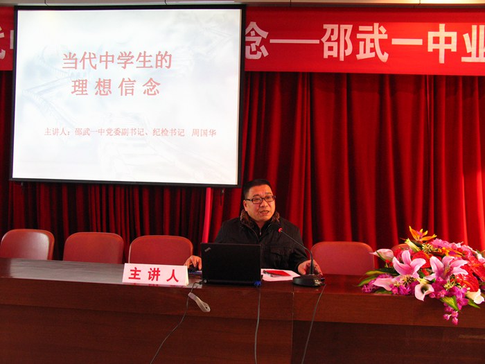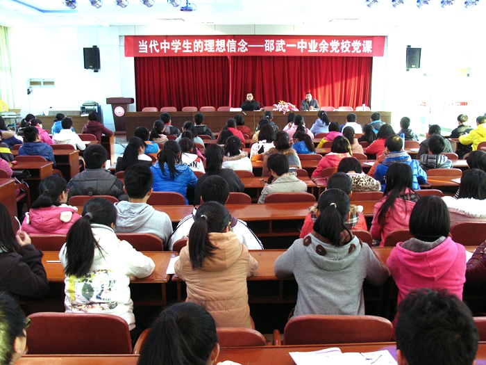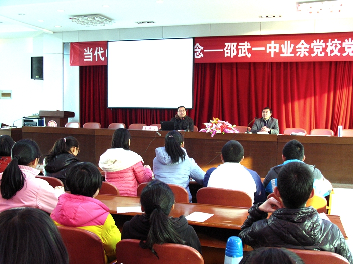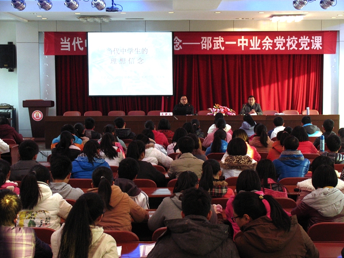 近日,邵武一中第八期业余党校在校教工会议室开班教授党课,200余名学员认真聆听了本次党课。主讲人校党委副书记,纪委书记周国华讲授了题为《当代中学生的理想信念》的党课。课上,他用一个个生动员的例子对中学生的理想信念作了深入浅出的阐述。生动的讲座让学员们都感到受益匪浅,他们纷纷表示要争做同学的楷模,争取早日入党。邵武一中“中学生业余党校”自2008年复办以来已成功举办了8期,已有2000多名学员顺利结业。