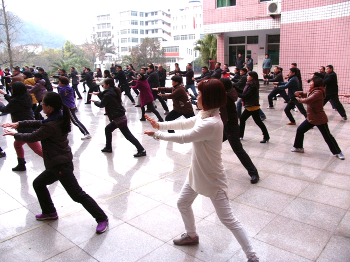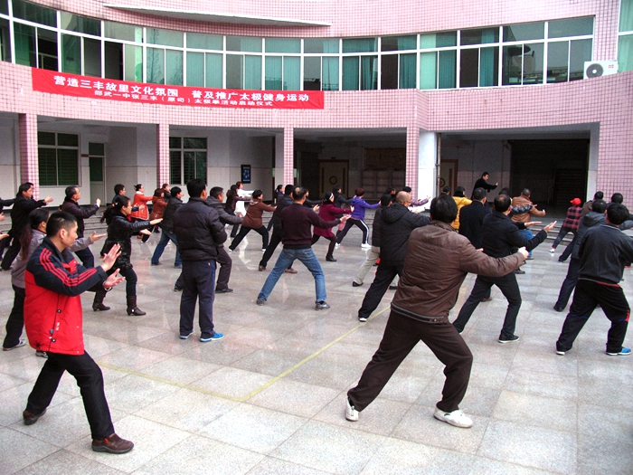 26日下午,邵武一中习练张三丰(原式)太极拳活动启动仪式在校现代教育中心举行,全校教职工30余人参加了启动仪式。为了保证活动能够顺利进行,学校专门制定了张三丰(原式)太极拳普及推广活动实施方案,从教师入手开展推广张三丰(原式)太极拳活动。学校安排体育教师毛文武担任总教练,利用每天下午放学后的时间,教授教职工太极拳。