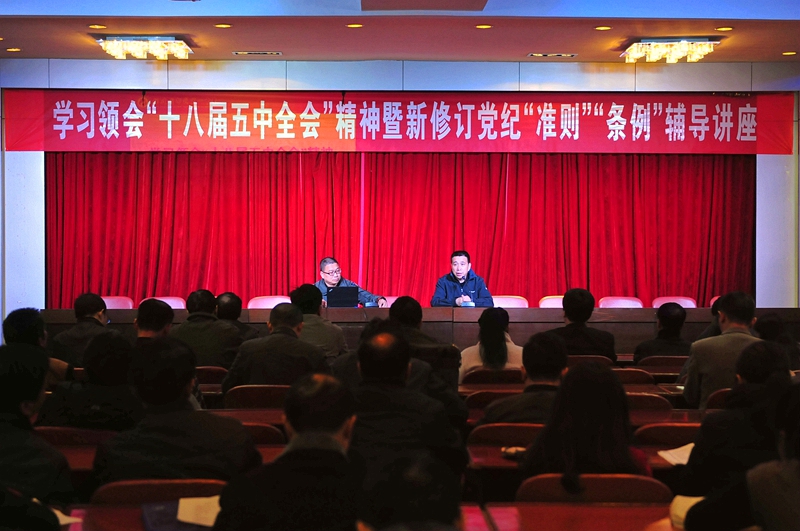 一中党委举办“学习领会十八届五中全会精神暨新修订党纪准则、条例”辅导讲座