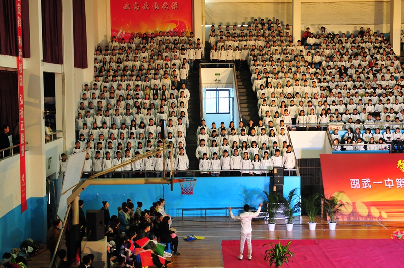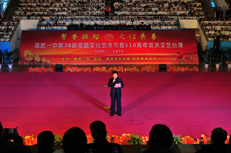 闽山苍苍,闽水泱泱;邵武故郡,文运煌煌;宋设试院,清改学堂;百年歌钟,余音邈远;薪火传递,绵延至今。邵武市第一中学自成立至今已走过一百一十年岁月,2015年12月31日“邵武一中2015年校园文化艺术节暨110周年校庆文艺汇演”在市体育馆圆满举行,载歌载舞庆贺一中百十华诞。教育局王其忠副书记、赵许帅副局长出席本次文艺汇演,郭胜光校长进行艺术节开幕致辞。